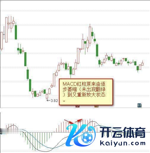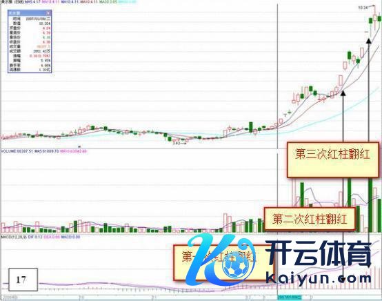 在实践中,MACD红柱不错连气儿出现两波以致三波连气儿性翻红,这是价钱强势连气儿上升的效果。操作上咱们最期待这么的走势。在价钱出现小幅诊治或颠簸再再行拉升时,MACD红柱原来由渐渐萎缩(未出现翻绿)到又再行放大,这是一个买入信号。